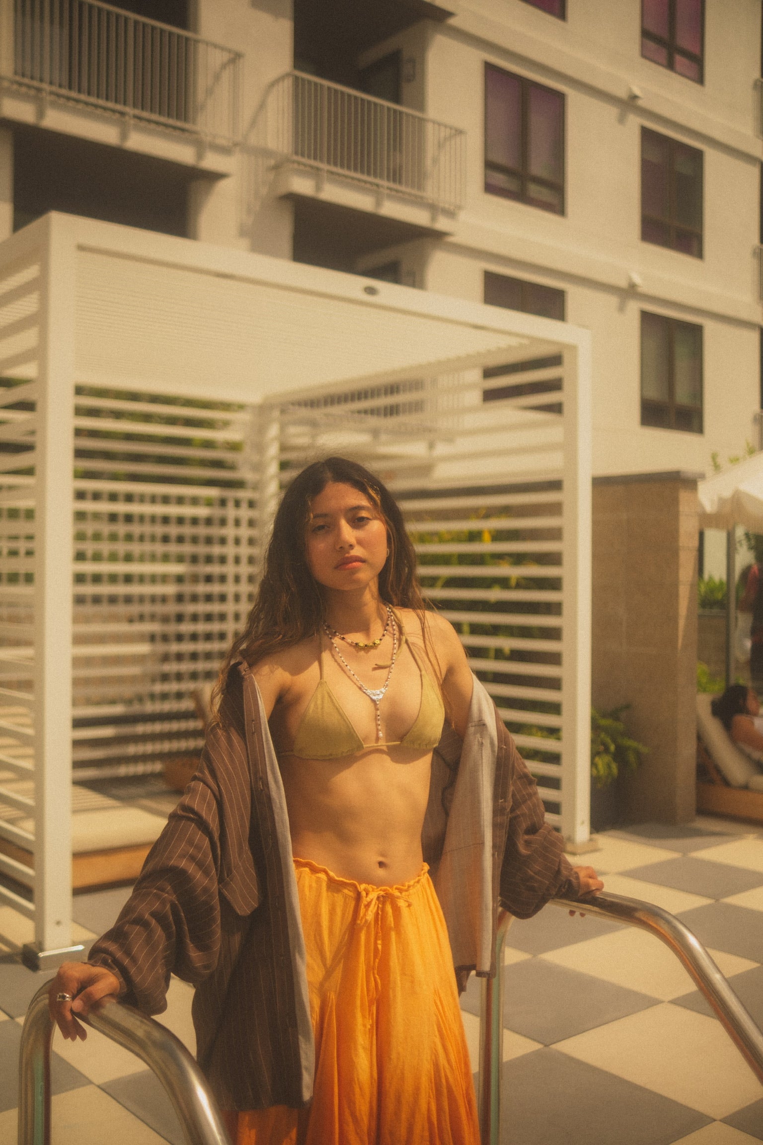 Indulge in effortless elegance with this luxury bikini top, expertly crafted from supple poly suede for a buttery-soft touch and refined texture. The serene sand color evokes natural sophistication, making it a timeless choice for sun-soaked escapes. With its smooth finish and minimalist design, this piece blends comfort and chic allure—perfect for lounging in style or making a subtle statement by the water